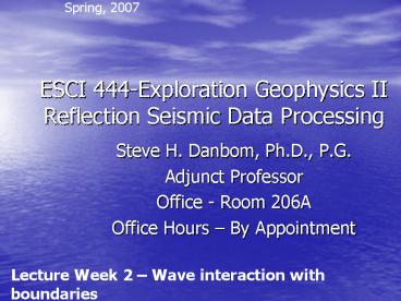 Title: ESCI 444Exploration Geophysics II Reflection Seismic Data Processing