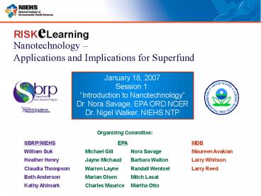 Nanotechnology Dr. Nora Savage, EPA ORD NCER Dr.