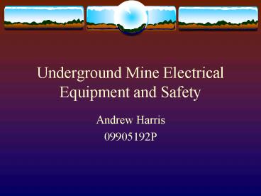 Underground Mine Electrical Equipment and Safety PowerPoint PPT Presentation