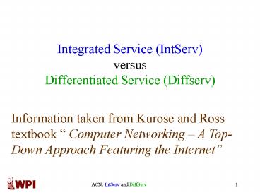 Integrated Service (IntServ) versus Differentiated Service (Diffserv) PowerPoint PPT Presentation
