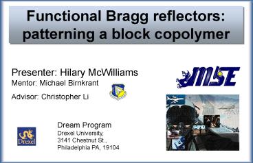 Title: Functional Bragg reflectors: patterning a block copolymer
