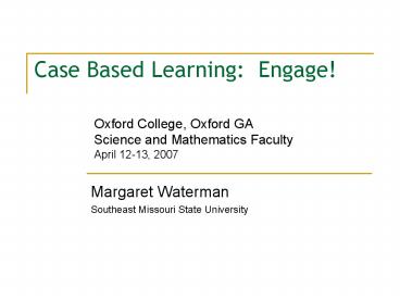 <Notice: Removed> Case Based Learning: Engage! PowerPoint PPT Presentation
