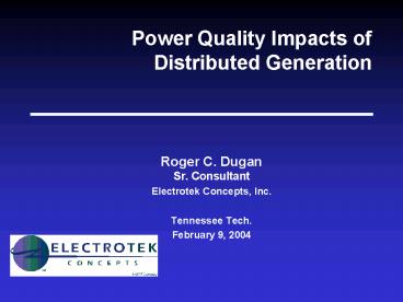 Title: Power Quality Impacts of Distributed Generation