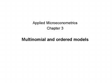 Title: Applied Microeconometrics Chapter 3 Multinomial and ordered models