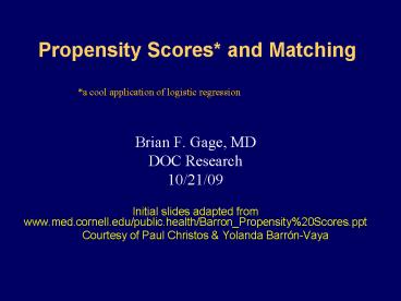 <Notice: Removed> Propensity Scores and Matching PowerPoint PPT Presentation