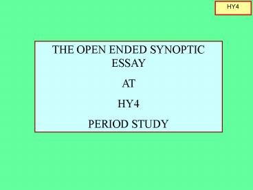 THE OPEN ENDED SYNOPTIC ESSAY AT HY4 PERIOD
