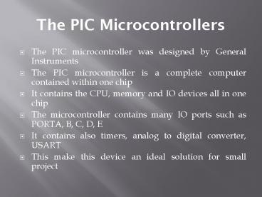<Notice: Removed> The PIC Microcontrollers PowerPoint PPT Presentation
