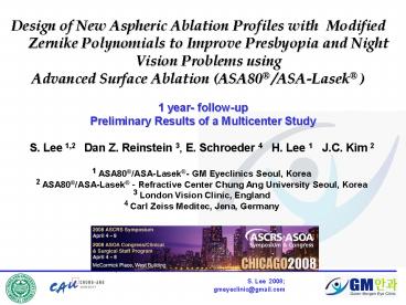 H. Lee 1 J.C. Kim 2 1 ASA80/ASA-Lasek- GM