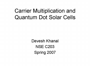Carrier Multiplication and Quantum Dot Solar Cells PowerPoint PPT Presentation