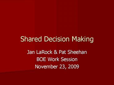 <Notice: Removed> Shared Decision Making PowerPoint PPT Presentation