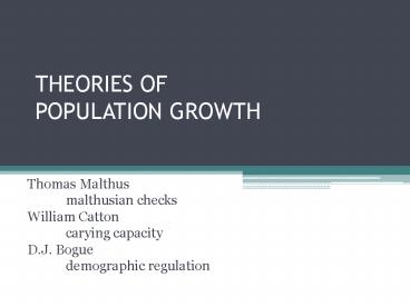 THEORIES OF POPULATION GROWTH PowerPoint PPT Presentation
