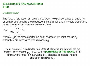 1ELECTRICITY AND MAGNETISM P10D Â Coulombs