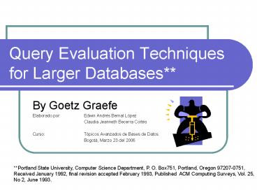 <Notice: Removed> Query Evaluation Techniques for Larger Databases** PowerPoint PPT Presentation