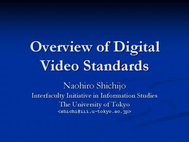 <Notice: Removed> Overview of Digital Video Standards PowerPoint PPT Presentation