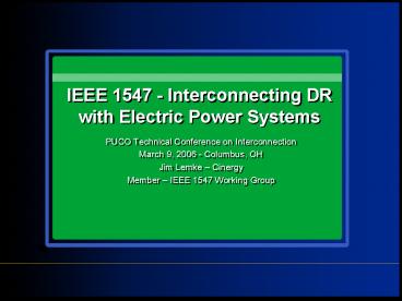 Title: IEEE 1547 Interconnecting DR with Electric Power Systems