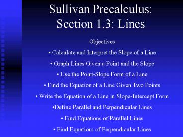 Title: Sullivan Precalculus: Section 1'3: Lines