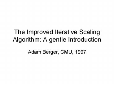 The Improved Iterative Scaling Algorithm: A gentle Introduction PowerPoint PPT Presentation