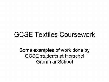 GCSE Textiles Coursework PowerPoint PPT Presentation