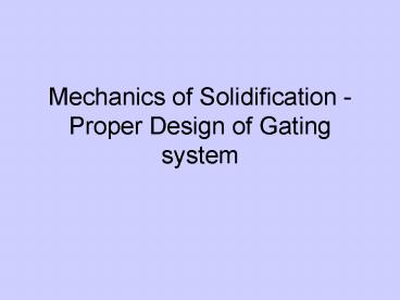 Title: Mechanics of Solidification Proper Design of Gating system