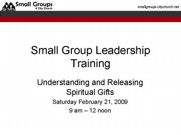 Title: Small Group Leadership Training