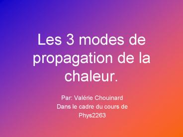 Les 3 modes de propagation de la chaleur. PowerPoint PPT Presentation