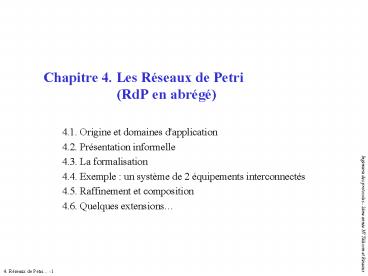 Title: Chapitre 4' Les Rseaux de Petri RdP en abrg