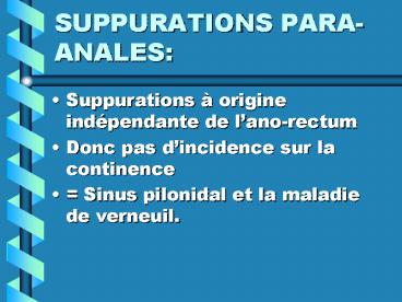 SUPPURATIONS PARAANALES: PowerPoint PPT Presentation