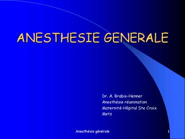 Title: ANESTHESIE GENERALE