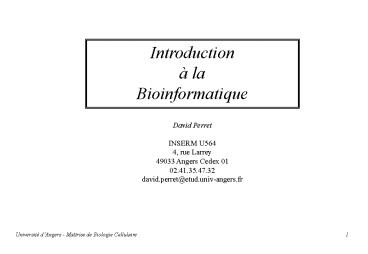 Title: Introduction la Bioinformatique
