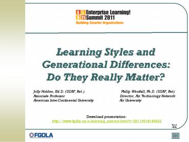 <Notice: Removed> Learning Styles and Generational Differences PowerPoint PPT Presentation