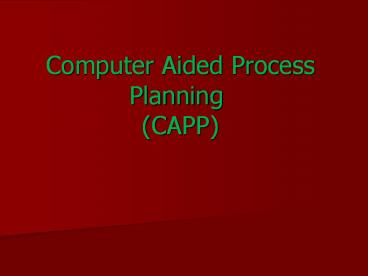 <Notice: Removed> Computer Aided Process Planning (CAPP) PowerPoint PPT Presentation