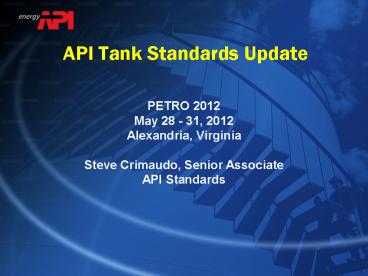 Title: API Tank Standards Update