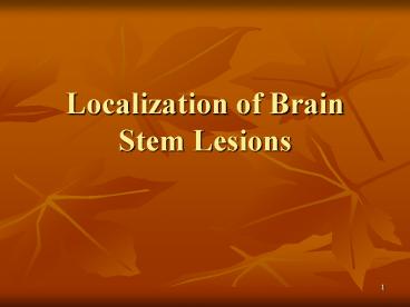 Localization of Brain Stem Lesions PowerPoint PPT Presentation