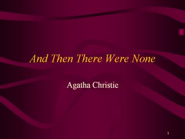 Right There 1.) Who is U.N. Owen? 2.) What happens to the General? Author and You 1.) Did Dr. Armstrong murder Mrs. Rogers? 2.) Is there anyone you can eliminate from suspicion?