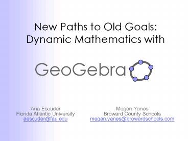 New Paths to Old Goals Dynamic Mathematics with