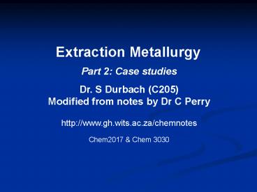 <Notice: Removed> Extraction Metallurgy PowerPoint PPT Presentation