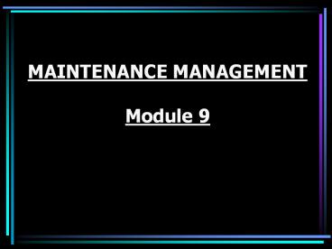 <Notice: Removed> MAINTENANCE MANAGEMENT Module 9 PowerPoint PPT Presentation
