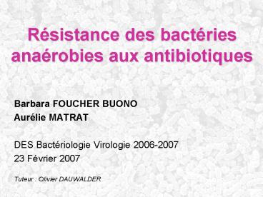 1Résistance des bactéries anaérobies aux