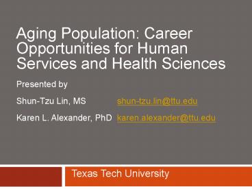 • Karen L. Alexander, PhD karen.alexander_at_ttu.edu