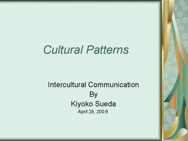 <Notice: Removed> Cultural Patterns PowerPoint PPT Presentation