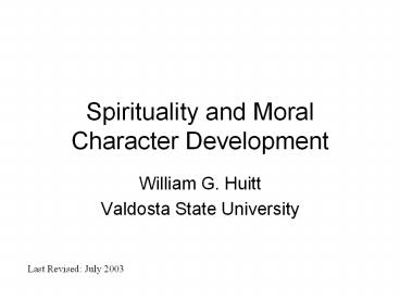 <Notice: Removed> Spirituality and Moral Character Development PowerPoint PPT Presentation