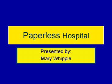<Notice: Removed> Paperless Hospital PowerPoint PPT Presentation