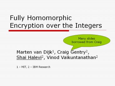 - Marten van Dijk1, Craig Gentry2, Shai Halevi2,