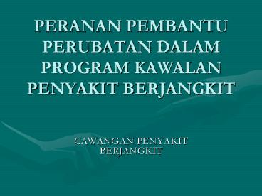 Title: PERANAN PEMBANTU PERUBATAN DALAM PROGRAM KAWALAN PENYAKIT BERJANGKIT