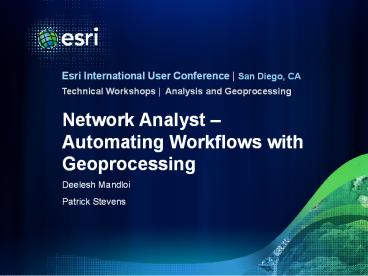 - Network Analyst at the Users Conference