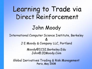 <Notice: Removed> Learning to Trade via Direct Reinforcement PowerPoint PPT Presentation