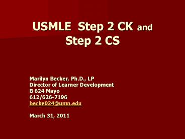 <Notice: Removed> USMLE Step 2 CK and Step 2 CS PowerPoint PPT Presentation