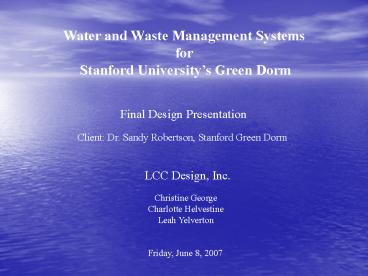 <Notice: Removed> Water and Waste Management Systems PowerPoint PPT Presentation