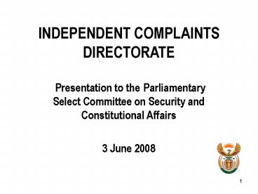 <Notice: Removed> INDEPENDENT COMPLAINTS DIRECTORATE PowerPoint PPT Presentation