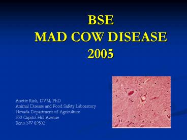 - Bovine Spongiform Encephalopathy (BSE), commonly